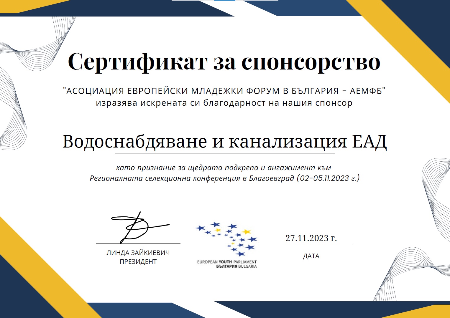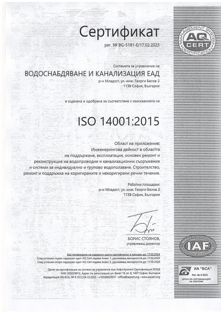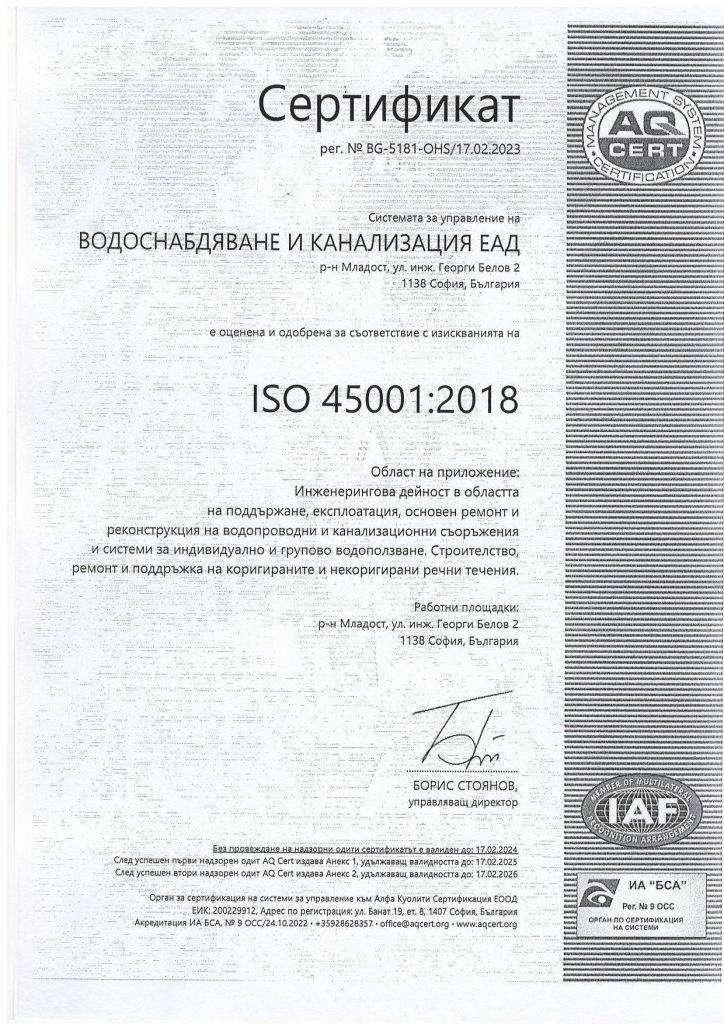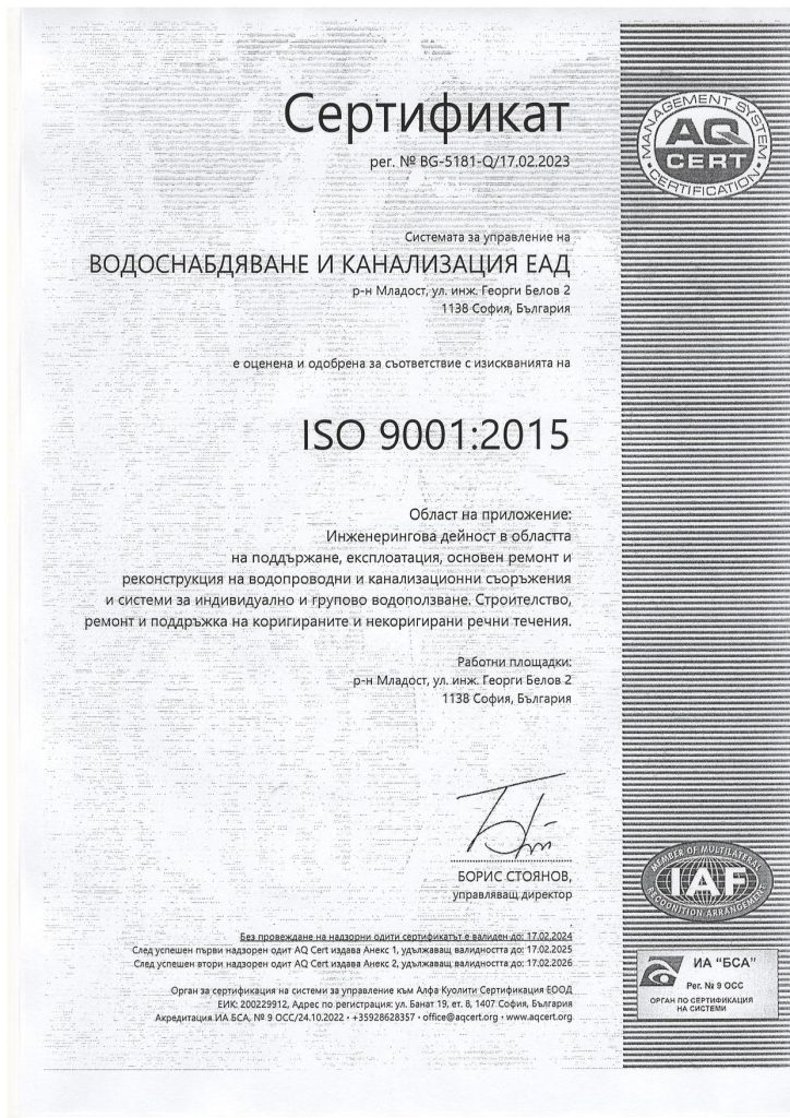 “ВОДОСНАБДЯВАНЕ И КАНАЛИЗАЦИЯ” ЕАД СОФИЯ